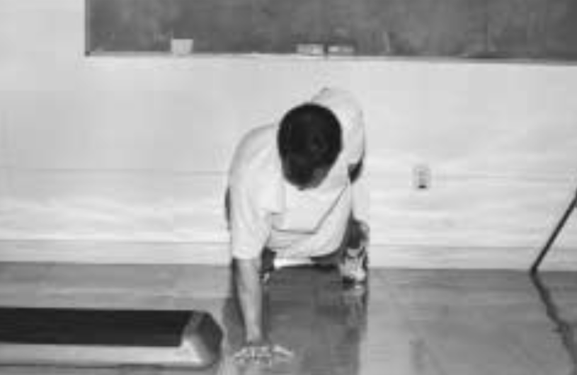 - Patient assumes a one-arm push-up position with his back flat, his feet and shoulders apart, and his weight-bearing upper extremity positioned perpendicular to the floor.